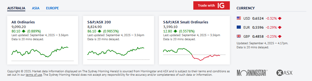 在华尔街隔夜企稳后,澳大利亚股市在一波广泛反弹中收复了周三的大部分重挫。截至澳大利亚东部标准时间中午 12 点 31 分,S&P/ASX 200 上涨 68.2 点,或 0.8%,报 8807 点,11 个行业板块中有 9 个上涨,金融和科技股领涨。此次上涨发生在市场周三下跌 1.8%之后,周三为五个月来最差单日表现,因全球债券抛售在对通胀和不断上升的政府债务的担忧中加速。澳元在澳大利亚东部标准时间中午 12 点 36 分报 0.6539 美元。在华尔街隔夜企稳后,澳大利亚股市在一波广泛反弹中收复了周三的大部分重挫。截至澳大利亚东部标准时间中午 12 点 31 分,S&P/ASX 200 上涨 68.2 点,或 0.8%,报 8807 点,11 个行业板块中有 9 个上涨,金融和科技股领涨。此次上涨发生在市场周三下跌 1.8%之后,周三为五个月来最差单日表现,因全球债券抛售在对通胀和不断上升的政府债务的担忧中加速。澳元在澳大利亚东部标准时间中午 12 点 36 分报 0.6539 美元。