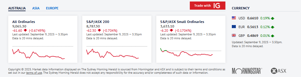 在一份报告显示澳大利亚消费者信心上月下降、家庭对经济前景感到担忧后,跌幅加速。Westpac 调查显示,9 月消费者信心回落 3.1%,至 95.4 点,这意味着自出现超过 100 点(乐观者占上风)以来已过去 43 个月。这是自 1974 年该调查开始以来的第二长持续期,仅次于 1990 年代初的经济衰退期。