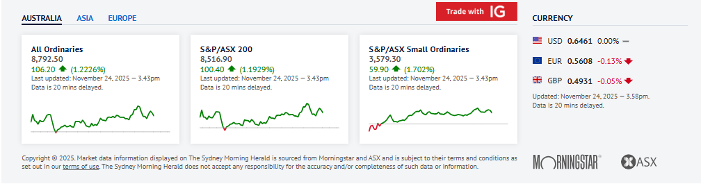 在华尔街上周收盘回升并带来美国降息希望后,澳大利亚股市本周开盘走强。周一午盘前,S&P/ASX 200 指数上涨 81.4 点,或 1%,至 8497.9 点,11 个板块全线上涨,科技和材料板块表现最佳。
