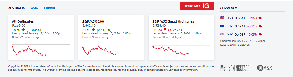 尽管隔夜华尔街受银行和科技股下挫影响走软,澳大利亚股市因大型矿业股上涨而开盘走高。标普/澳交所 200 指数在周四开市后不久上涨 0.3%,至 8842.90,11 个板块中有 5 个上涨,材料板块领涨。经历周三波动的交易后,今日开盘呈现积极走势。澳元汇率为 0.6682 美元。矿业巨头必和必拓上涨 2.2%,力拓上涨 1.5%,福特斯克上升 0.4%,投资者对材料板块的情绪转为积极,金矿商 Northern Star Resources(上涨 1.4%)和 Evolution Mining(上涨 0.4%)也有所上扬.