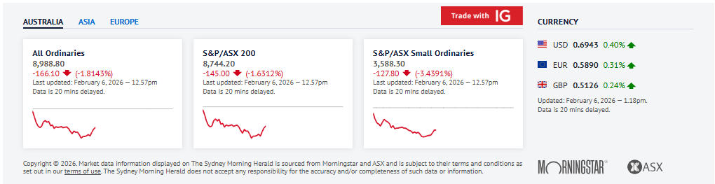 在全球市场经历剧烈动荡后,澳大利亚股市的跌幅正在扩大,华尔街下挫,比特币再次暴跌至大约去年创纪录价格的一半左右。午盘时段,S&P/ASX 200 下跌 172.8 点,或 1.9%,11 个行业板块全部收红(注:此处原文意为全部板块走低)。加密货币市场一夜之间暴跌,比特币一度跌破 61,000 美元(约 88,240 澳元)。