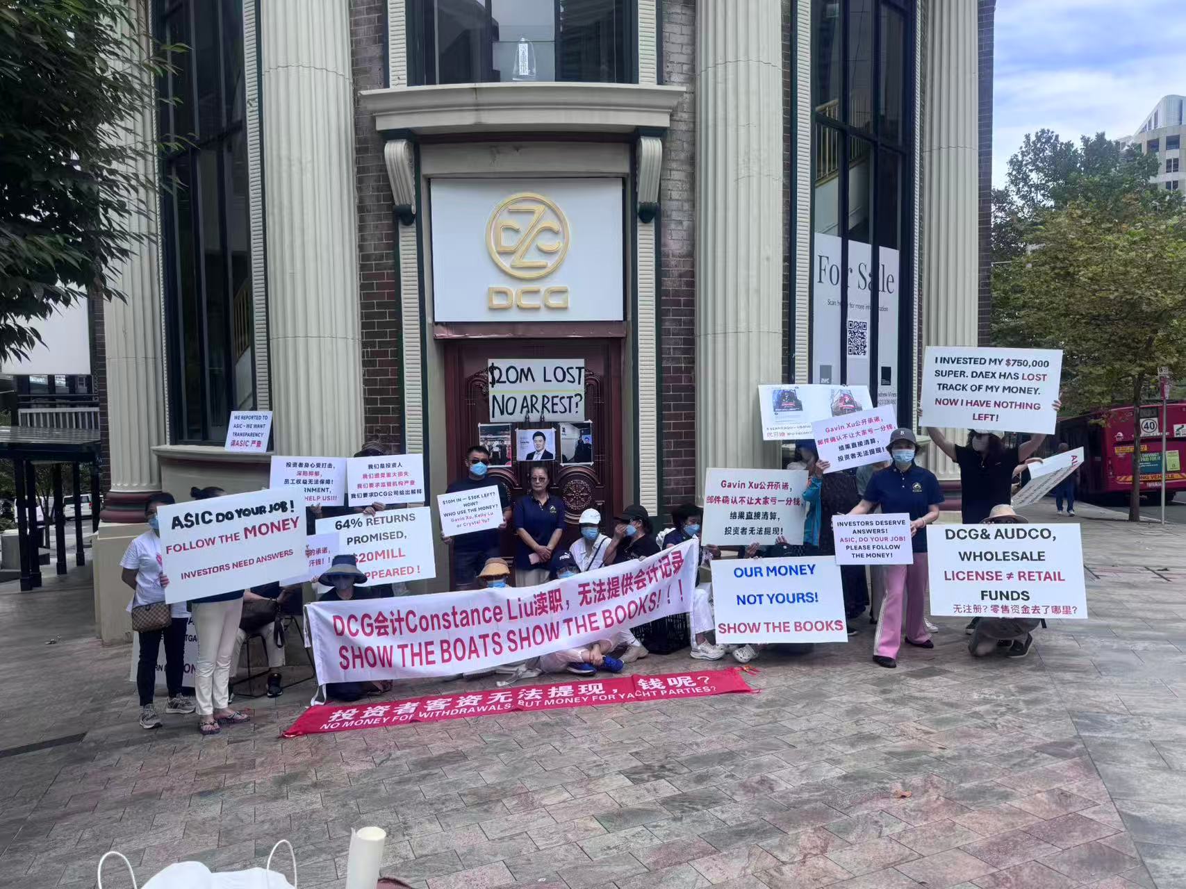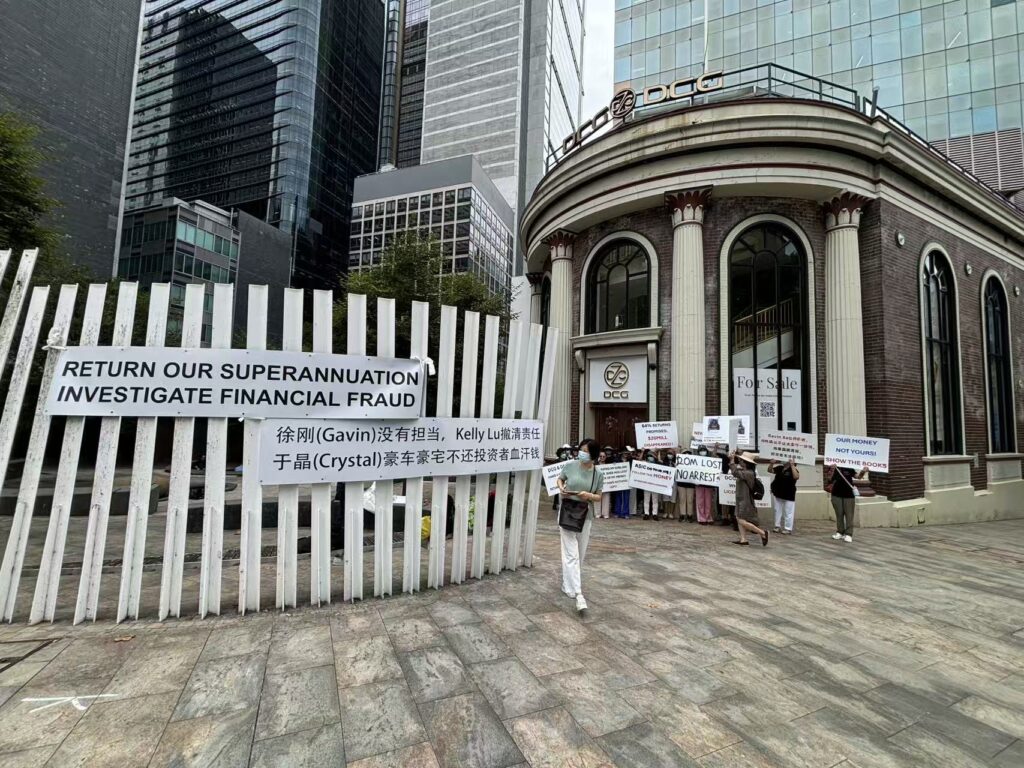 近日,DCG资本集团旗下平台是 DAEX PTY LTD以及基金公司NEW VISTA FUND正式进入清盘程序,引发部分投资者强烈不满。2月25日上午,多名投资者聚集在公司在North Sydney办公地点门前举行抗议活动,要求公司管理层公开账目,并就资金去向作出说明。