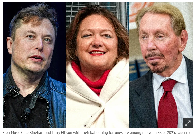 这些财富增长的成果并不单单限于美国。虽然标普500指数年涨幅接近17%,但被英国富时100指数上涨20%,和香港恒生指数上涨30.6%所超越。 其他资产类别表现更佳:贵金属创下数十年来的黄金期之一,铜和稀土也成为具有重要地缘政治意义的商品,主要持有者包括澳大利亚矿业巨头和智利的卢克西奇家族,为其财富增添了数十亿美元。